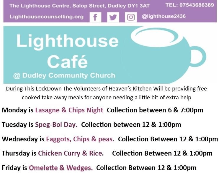The Lighthouse Cafe and Heaven’s Kitchen at Dudley Community Church in Salop Street, Eve Hill Dudley https://www.facebook.com/dccheavenskitchen/
